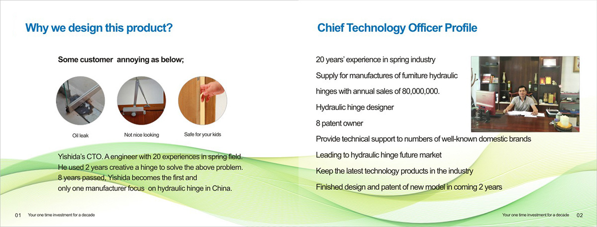 With this goal , Yishida CEO Mr Wu who with 20years experience in the spring field start his develop from 2008-2011. A hydraulic with auto closing function creation at the end of 2011.